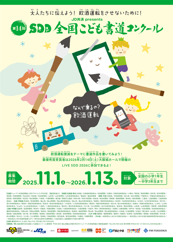 FM FUKUOKAとジェイ・ディ共済から「SDD全国こども書道コンクール」開催のお知らせです。