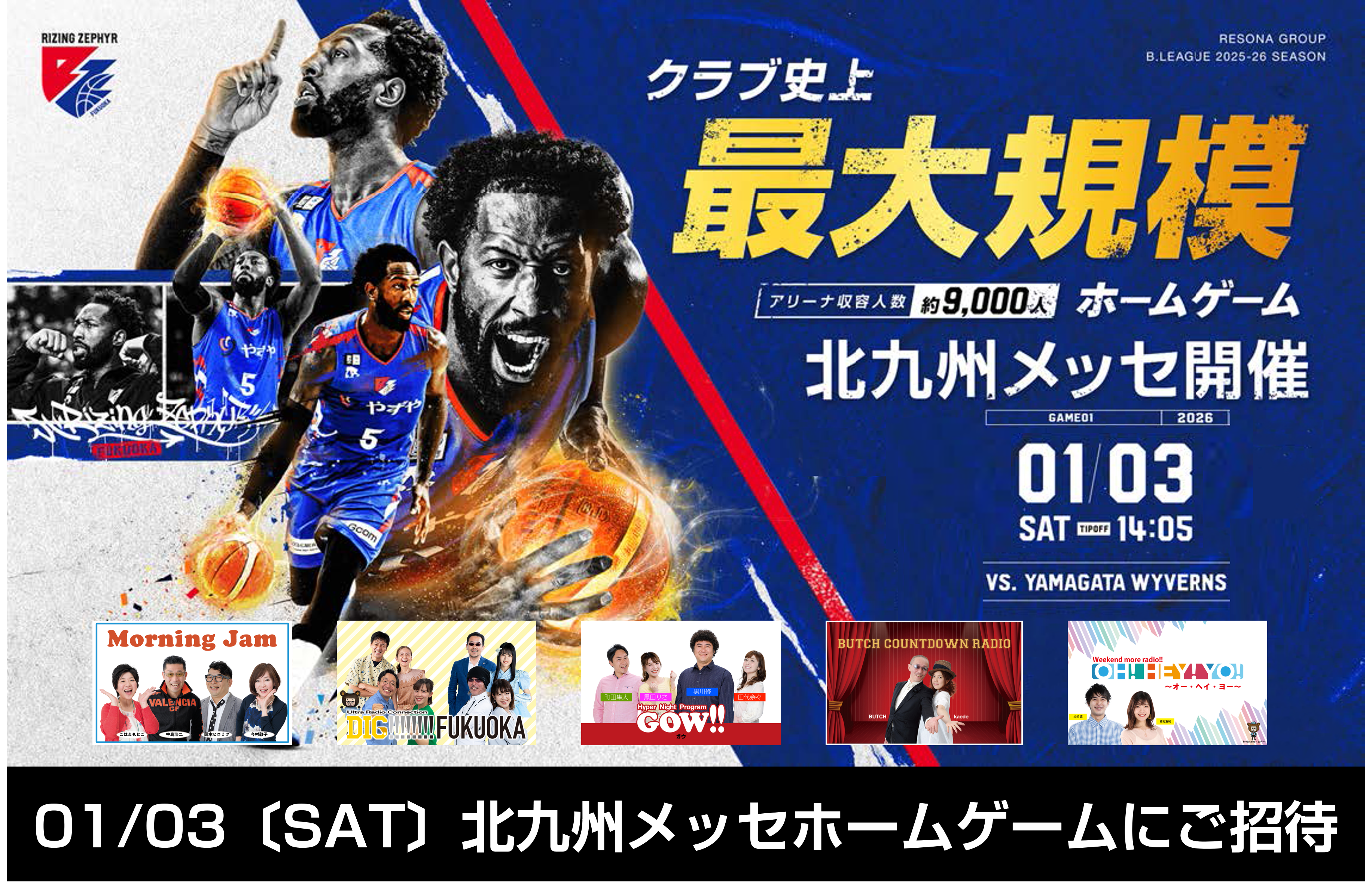 1/3(土)ライジングゼファーフクオカ 北九州メッセホームゲームにご招待