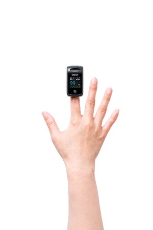 ・本体の指電極に右手人さし指、胸電極を素肌の左胸部にあて、本体ボタン1つで簡単に心電図を記録