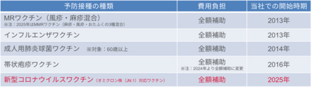 接種ワクチンの費用負担と開始時期
