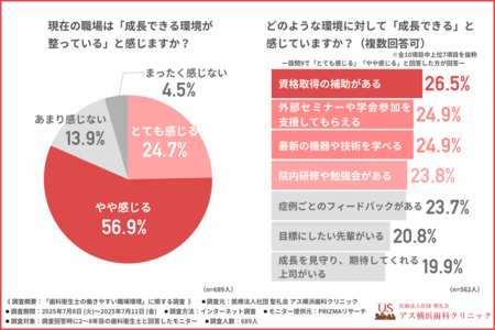 医療法人社団 聖礼会 アス横浜歯科クリニック(所在地:神奈川県横浜市、理事長:丹谷 聖一)は、2~8年目の歯科衛生士を対象に「歯科衛生士の働きやすい職場環境」に関する調査を行いました。