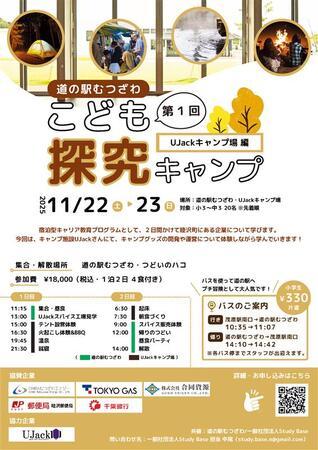 パシフィックコンサルタンツ株式会社(本社:東京都千代田区、代表取締役社長執行役員:大本修)がPFI事業者として運営する「むつざわスマートウェルネスタウン・道の駅・つどいの郷」(千葉県長生郡睦沢町、千葉県道150号大多喜一宮線沿い、以下「道の駅むつざわ」)は、地域企業・教育事業者と連携し、2025年11月22日(土)・23日(日)に 、「2025年度地域体験学習プログラム」として、小学3年生~中学3年生を対象とした「こども探究キャンプ(UJack むつざわオートキャンプ場編)」を開催します。