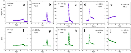・高純度のPb線(超伝導体)とAl線(2 K以上で常伝導体)をハンダ接合することで、熱ダイオードを作製。