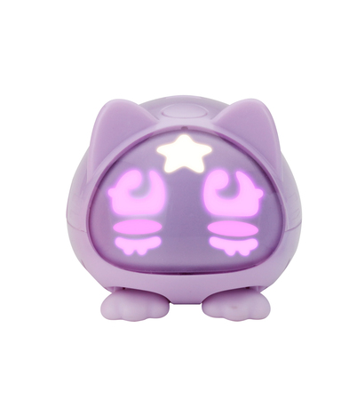 体長約6cm で手のひらに乗るほど小さなペットロボットです。小さいながらも人工知能を搭載し、【1】「おあそび」、【2】「おさんぽ」、【3】「うた」、【4】「つうしん」と4つのモードで楽しむことができます。本体や付近の床面をトントンと叩く回数で、モードが切り替わります。