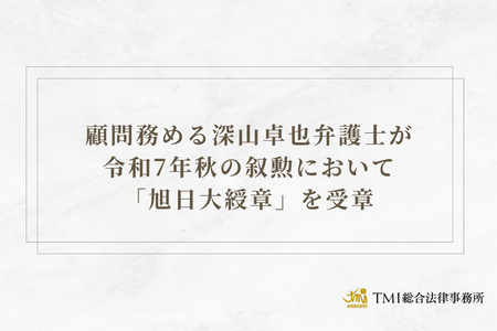 顧問を務める深山卓也弁護士 令和7年秋の叙勲において「旭日大綬章」を受章