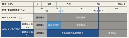 *2ヘリオスドライブ:地震発生時に、エレベーターのかごを地震時管制運転により最寄り階に停止し乗客を避難させた後、一定時間経過後エレベーターが自動で診断運転を行い、異常がなければ自動で仮復旧させる機能。