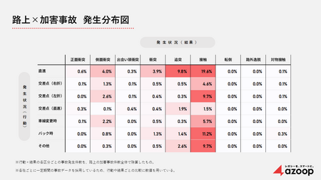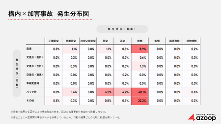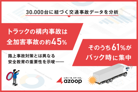 株式会社Azoop(本社:東京都港区、代表取締役社長 CEO:朴 貴頌、以下Azoop)は、Azoopが提供する運送会社向け業務支援サービス『トラッカーズマネージャー』に蓄積された3万台の車両に紐づく事故データを基に、トラックによる構内事故(事務所や物流拠点などの敷地内における交通事故)626件の傾向を分析しました。なお、本分析は加害事故を対象としており、被害事故(相手から衝突された)および自損事故(相手方がいない単独事故)は分析対象から除外しています。