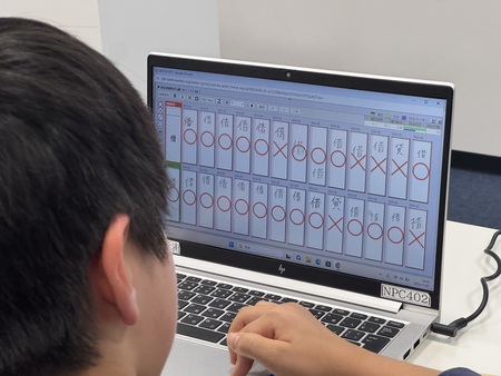 採点時の判断基準が分かったところで、久冨さんも実際に採点にチャレンジ。挑戦する採点画面には実際の採点現場と同様に、1問ごとに切り出された解答画像がずらりと並びます。このように、同じ問題に対する複数の受検者の回答を横並びで表示させることで、見落としを防ぎながら効率のよい採点を実現しています。
