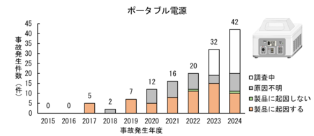 【画像:https://kyodonewsprwire.jp/img/202511189295-O5-11NjkWH5】 図7 「ポータブル電源」の事故発生件数の推移(2015~2024年度)