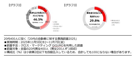 20代免許保有者226人に運転する理由を聞くと、「気持ちよさを感じたくてドライブをする」ことが「ある(よくある、ときどきある)」と答えた人は約半数の46.5%となりました。