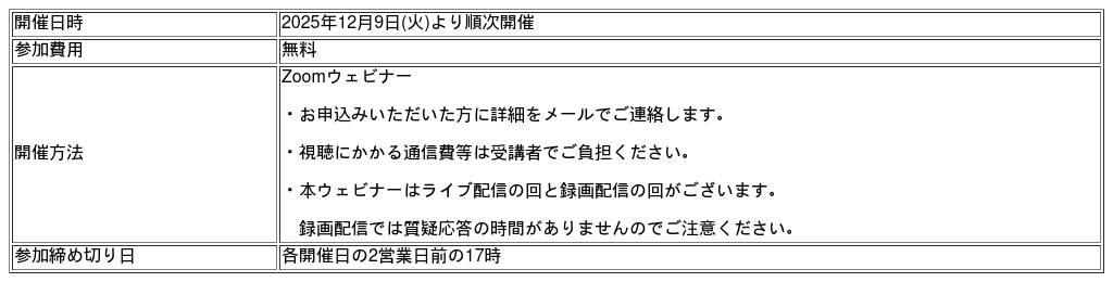 【録画】2025年12月22日(月) 11:00~12:00(10:45から接続可能)