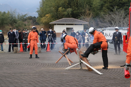 新春恒例 !菰野町消防出初式を開催 入場パレードや一斉放水の他、はしご車搭乗体験や訓練展示も