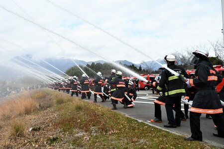 当日は入場パレードを皮切りに、優良消防団員の表彰や通常点検、消防訓練展示といった伝統的な催しに加え、消防団員による一斉放水も実施します。