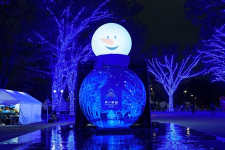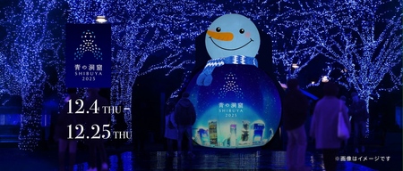 そして、今年の『青の洞窟 SHIBUYA』のテーマは『青の洞窟 THE SNOWMAN』。昨年の『青の洞窟 THE SNOW DOME』で好評を博した球体バルーン演出をさらに進化させ、雪だるま型の巨大バルーン『青の洞窟 THE SNOWMAN』が初登場します。このバルーンでは、雪や星、オーロラを思わせる幻想的な映像コンテンツが投影され、見る角度や時間帯によって異なる表情を見せるのが特徴です。
