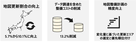 建物の「変化量」という客観的な指標に基づき更新対象(データ調達対象)エリアを選定できるようになったことで、全国を対象に地図更新業務の優先順位付けが可能となり、整備領域の効果的な拡充が可能になりました。