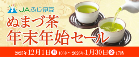 JA全農が運営する産地直送通販サイト「JAタウン」のショップ「JAふじ伊豆」は、1月30日(金)17時まで「ぬまづ茶 年末年始セール」を開催しています。