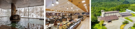 秋田駒ヶ岳の麓、標高700mの田沢湖高原に佇む、豊かな自然に包まれた温泉リゾートホテル。爽やかな風が抜けるブナ林に囲まれた大浴場では、肌にやさしいメタケイ酸を豊富に含む源泉による天然温泉が、心と身体を癒します。「山岳リゾートレストラン」 では、秋田の伝統的な郷土料理や地元食材を生かした創作メニューに加え、自慢のジビエ料理など、多彩な全60品をご用意。大自然の恵みを存分に味わえる食の時間をお楽しみいただけます。