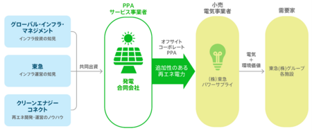 グローバル・インフラ・マネジメント株式会社(以下「GIM」)、東急株式会社(以下「東急」)、株式会社クリーンエナジーコネクト(以下「CEC」)は、3社共同出資による合同会社(以下「発電合同会社」)を通じ、東急㈱グループ向けに追加性※1のある再生可能エネルギーを長期にわたって提供するオフサイトコーポレートPPA※2サービス(以下「本取り組み」)を開始します。