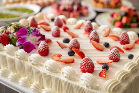 鹿児島のクリスマス定番郷土料理「ごて焼き」(骨付き鶏もも肉を甘辛いタレに漬け込み、焼き上げた一品)をはじめ、フライドチキンやビーフシチューなどの多彩なクリスマスメニューをご用意。デザートにはブッシュドノエルなどのクリスマスケーキを中心に多彩なスイーツが揃い、ご家族みんなで楽しめるクリスマスビュッフェとなっています。