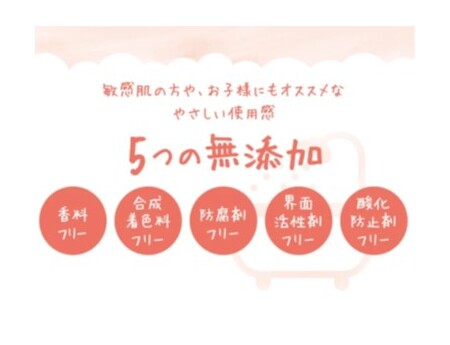 こうしたニーズに応え、5つの成分を無添加(※)にし、お子さまにも使いやすい処方にこだわりました。