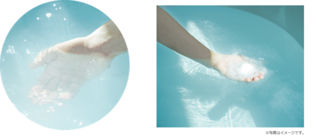 & HUG timeではバスボールの微発泡化、易溶化、発泡時に発生する炭酸ガスの抑制、咳き込み防止にも取り組んでいます。
