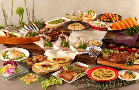 ビュッフェメニューには、千葉県産蛤のクラムチャウダー(ディナー限定)、真鯛のつみれ汁、サバのピーナッツみそ焼き、千葉県産アジフライ、ピーナッツ担々麺、鉄砲漬け入り五目チャーハンなど、和洋中を織り交ぜた幅広い料理を揃えております。デザートには、抹茶テリーヌやトリュフショコラ、シフォンケーキなどを揃え、お子様からご年配の方まで幅広くお楽しみいただけます。