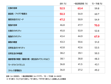 (63.4%)。15~19歳で「勉強の効率」が向上した、「勉強のクオリティ」が向上したと考える人は、ともに約7割。