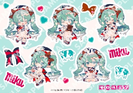 イラストレーター・夢ノ内氏がチロルチョコのミルク味をテーマに描き下ろした甘くとろけるキュートな初音ミクを、全5種のデザインに落とし込みました。