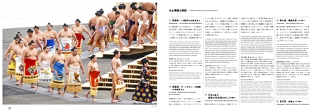 力士たちの染め抜き着物姿は、場所入りや巡業、行事などで見ることができる。色とりどりの染め抜き着物を身にまとい、個性と魅力にあふれた力士たちの写真も、解説&力士の略歴とともに収録する。