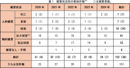 (※3)物的被害(製品破損または拡大被害)があった場合でも人的被害のあったものは、人的被害に区分している。また、人的被害(死亡・重傷・軽傷)が複数同時に発生している場合は、最も重篤な分類で事故件数をカウントし、重複カウントはしていない。