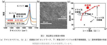 国立研究開発法人産業技術総合研究所(以下「産総研」という)ナノカーボン材料研究部門の周 英 主任研究員らは、高い導電性を持つカーボンナノチューブ(CNT)薄膜を形成するための、高品質CNT分散液を得る手法を開発しました。