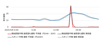 「需給調整市場価格予測」と「スポット市場価格予測」の予測結果の例