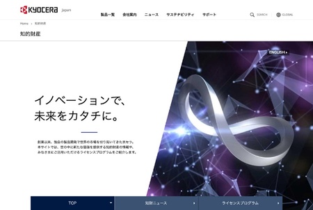 さらに、当社は知的財産の活用も進めており、その一環として「京セラグループ知的財産サイト」を開設しています。当サイトでは、京セラが開発・保有する独自技術の一部を分かりやすく紹介し、他企業とのイノベーションや新たなビジネス機会の創出に努めています。今後も、事業の保護と持続的成長に貢献する知的財産の創出と有効活用に取り組んでまいります。