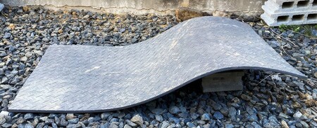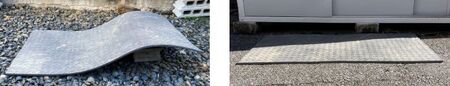 従来、敷板は鉄製が多く使われていましたが、重量があるため移動や設置にはクレーン付きトラックが必要となります。濡れると滑りやすくなり、作業員や運搬車のスリップも起きやすくなります。さらに、鉄製敷板はスクラップとして売却できることから盗難対策も課題となっておりました。