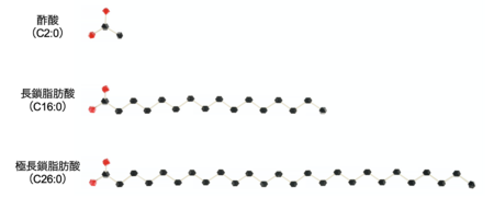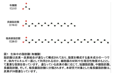 生体には、様々な種類の脂肪酸が存在します。中でも、炭素がとても長くつながった脂肪酸は極長鎖脂肪酸とよばれます(図1)。