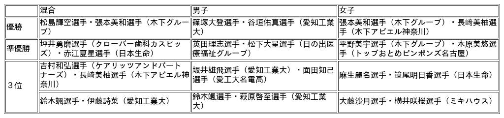 混合ダブルスの部で優勝した松島輝空選手 張本美和選手(木下グループ)ペア