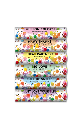 1種類ずつでも可愛いデザインでありながら、マーブル同士をつなげると、両端の人々がマーブルをまるでバトンのように受け渡しをしているようにも見えるデザインとなっており、多様なつながりを表現しています。どの種類のマーブルとの組み合わせでもつながるデザインとなっていますので、ご自身で楽しむだけでなく、大切な方に贈るなど、さまざまなかたちでお楽しみいただけます。また、パッケージのどこかに隠れている想いを込めたメッセージもぜひ探してみてください。