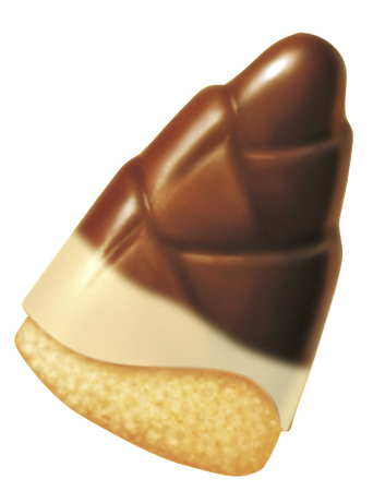 山本シェフが子どもの頃から大好きな「きのこの山」を、大人として、そしてショコラティエとしてのこだわりを込めて、ナッツの香ばしさと抹茶の風味を楽しめるフレーバーに仕立てていただきました。チョコレート部分は 2 層構造で、「きのこの山」ならではのカカオ香るチョコレートと、ヘーゼルプラリネに抹茶を合わせたチョコレートにキャラメルパウダーを加えてコクをプラスし、ココア風味のクラッカーと組み合わせました。チョコレート部分に配合したクラッシュキャンディの食感も楽しめます。 ※1