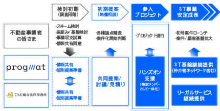 2025年から2026年にかけての不動産業界の大きな変化と事業者の潜在的な需要を踏まえ、Progmat社およびTMIの双方の強みを掛け合わせ、不動産ST新規参入に向けて必要な支援を一気通貫で行うサービスを提供することとしました。