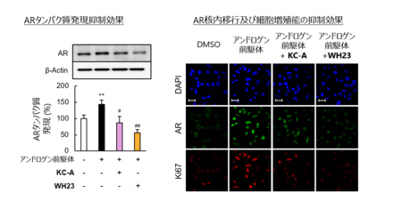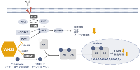 ・WH23は、がん細胞内でのアンドロゲン供給を止めるだけでなく、増殖の司令塔であるアンドロゲン受容体(AR)の発現自体も抑制するという「二重の作用メカニズム」を持つことを明らかにしました。
