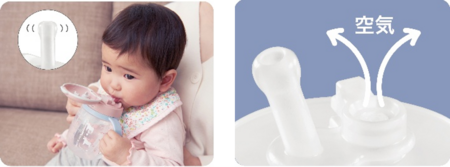 「吸う」「飲む」を行いやすい構造に加え、お手入れのしやすさにもこだわり、ママ・パパも使いやすい工夫が詰まっています。