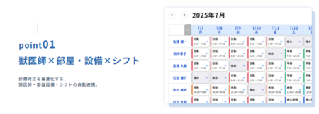 Point 01. 獣医師×診察室/設備×シフト連携で、複雑な診療体制に柔軟対応