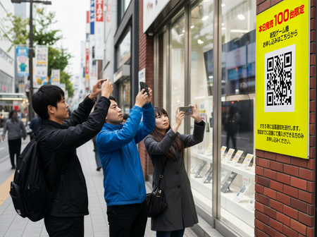 人気商品の抽選販売や限定キャンペーンにおいて、QRコードを撮影して遠隔地の仲間へ転送する「転売目的の組織的な応募」が問題となっています。 『QRtoken®』大型ディスプレィを店頭に設置することで「その場にいる人」しかアクセスできない環境を構築できます。時間経過でURLが無効化されるため、物理的に大量応募を阻止。正規のお客様へ、公正な予約・販売の体制を提供することができます。