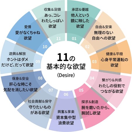 に、人間の消費行動を駆り立てる感情を「11の欲望(Desire)」として可視化。普遍的な「根源的欲