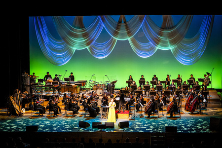 コンサートが始まると、平原は「おひさま~大切なあなたへ」で会場を包み込むような歌声を聴かせる。2024年から引き続きタッグを組んでいる洗足学園ニューフィルハーモニック管弦楽団の演奏が平原の優しく力強い歌声に寄り添い、見事なハーモニーを奏でていた。他にも、平原の多彩な歌声を味わうことができる「The Sound Of Music Medley」、ボイスパーカッションが印象的な「アランフェス協奏曲〜Spain」など、歌手としてのスキルの高さで観客を楽しませる。