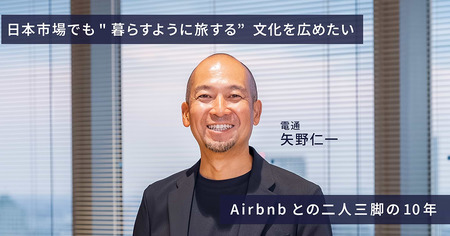 住宅宿泊事業法(民泊新法)の施行から7年。Airbnbが日本に進出した当初から、広告・コミュニケーションの側面で伴走してきたのが電通です。今回は、同プロジェクトに初期から関わってきたビジネスプロデューサーの矢野仁一氏に当時の舞台裏とAirbnbという企業の魅力について伺いました。