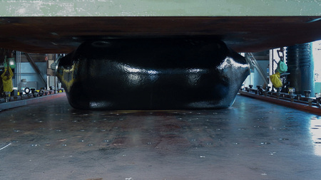 本製品は、船舶が岸壁などに接岸・係留する際に生じる衝撃を吸収・緩和し、船舶および港湾設備を保護するために用いられる防舷材です。防舷材には、岸壁に固定して使用する「ゴム式」と、水に浮かべて使用する「浮体式」があり、浮体式には「空気式」と「フォーム式」の2種類があります。