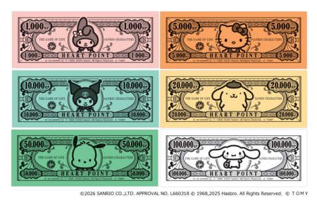 株式会社タカラトミー(代表取締役社長:富山彰夫/所在地:東京都葛飾区)は、盤ゲーム「人生ゲーム」の歴代83作品目の新商品として「サンリオキャラクターズ 人生ゲーム」(希望小売価格:4,950円/税込)を、2026年4月下旬から全国の玩具専門店、百貨店・量販店の玩具売り場、インターネットショップ、タカラトミー公式ショッピングサイト「タカラトミーモール」(takaratomymall.jp/)等にて発売します。なお、「タカラトミーモール」では2026年2月27日(金)から予約受付を開始します。