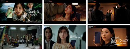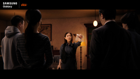 ドラマの役柄に熱量高く入り込む、主人公・みな実を演じる田中みな実さん。1本目のアクションドラマでは隊員を演じ、電波が届かない山奥での遭難シーンでは、助けを求めて彷徨い続けますが、食料も水も尽き絶体絶命に。そんな中、主人公・みな実は緊迫した表情で「au Starlink Directなら、圏外でも地図アプリ使える」と隊員たちに告げたところでカットがかかります。田中さんは「使えていいんですか?」と監督に疑問を投げかけますが、「auなら空が見えれば、どこでもつながるからね」と監督は得意気に語ります。本当にこの演出でいいのかともやもやとしたまま、次のラブストーリーのドラマへと続きます。舞台は暗い路地で主人公・みな実が恋人の腕に抱かれながら今にも息絶えそうなクライマックスを迎えるシーン。最後の力を振り絞り、路地にいる猫をナイトグラフィービデオで撮影する主人公・みな実が残した言葉は「暗がりでもね、撮影した動画がキレイ」。再び田中さんは「本当にこれでいいんですか?」と監督に詰め寄りますが、監督は当然のように「先回りするAIフォンだからさ」と語り続けるのでした。最後の刑事ドラマのシーンでは、主人公・みな実が犯人を追い詰め、決定的な証拠としてナイフを取り出した後、”Samsung Galaxy S26 Ultra”を持って「あなたもauの新しいGalaxy!」と決めぜりふを放ちCMは締めくくられます。