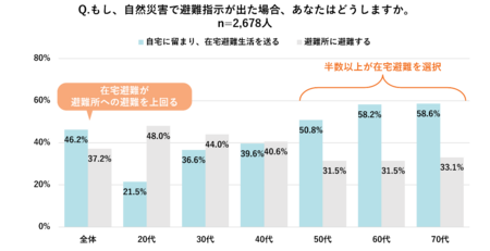 【災害の多様化と意識調査(被災経験者2,678名への調査)】避難指示でも「在宅避難」希望が過半数